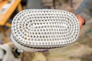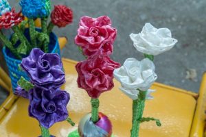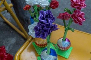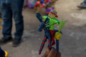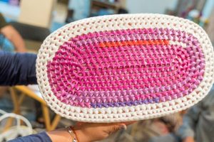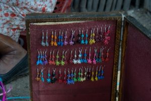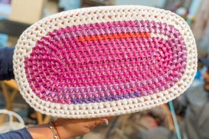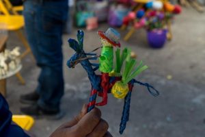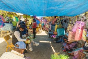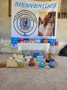 Artesanos set up and showing off their now work with the logo.
